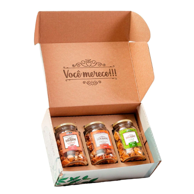 Caixa de Presentes Dourado de Amendoim, Flor de Sal e Pistache - 3 Potes 230g